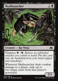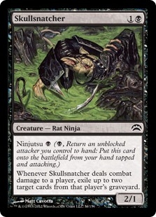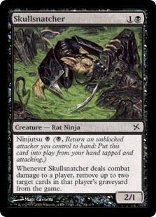 Skullsnatcher’s ability can target zero, one, or two cards in that player’s graveyard.