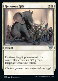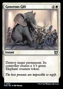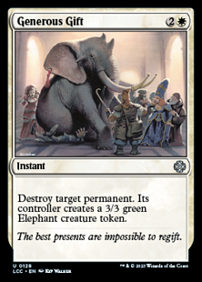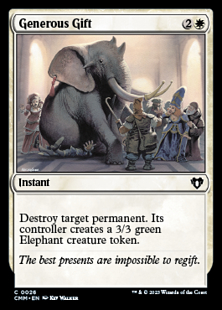 Destroy target permanent. Its controller creates a 3/3 green Elephant creature token.