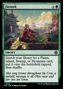 Search your library for a Plains, Island, Swamp, or Mountain card, put it onto the battlefield tapped, then shuffle.