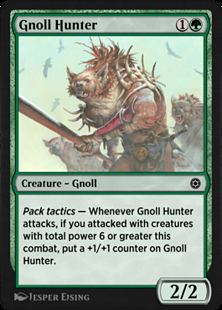 Pack tactics — Whenever this creature attacks, if you attacked with creatures with total power 6 or greater this combat, you may put a Dragon creature card from your hand onto the battlefield tapped and attacking.