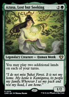 Azusa's ability is cumulative with other effects that allow you to play additional lands, such as that of Song of Creation (from the Ikoria: Lair of Behemoths set).