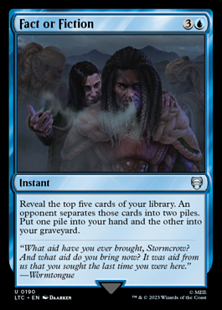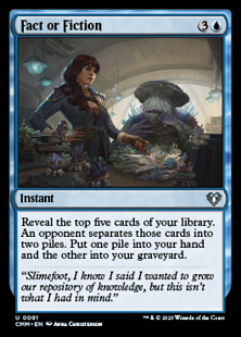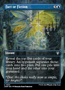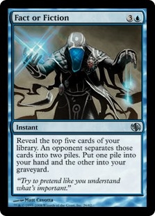 Reveal the top five cards of your library. An opponent separates those cards into two piles. Put one pile into your hand and the other into your graveyard.