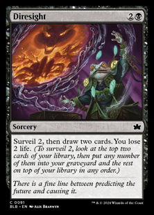 Scry 2, then draw two cards. You lose 2 life. (To scry 2, look at the top two cards of your library, then put any number of them on the bottom and the rest on top in any order.)