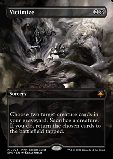 Choose two target creature cards in your graveyard. Sacrifice a creature. If you do, return the chosen cards to the battlefield tapped.