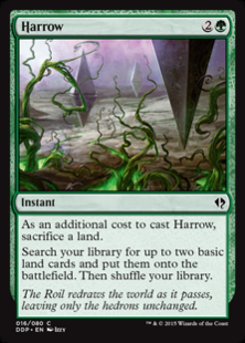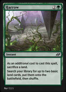 Search your library for up to two basic land cards, put them onto the battlefield, then shuffle.