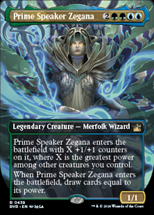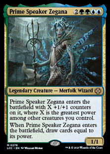 Prime Speaker Zegana enters with X +1/+1 counters on it, where X is the greatest power among other creatures you control.