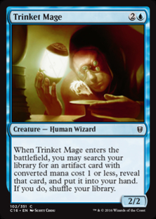When this creature enters, you may search your library for an artifact card with mana value 1 or less, reveal that card, put it into your hand, then shuffle.
