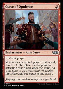 Whenever enchanted player is attacked, create a 2/2 black Zombie creature token. Each opponent attacking that player does the same.