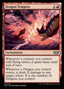 Whenever a Dragon you control enters, it deals X damage to any target, where X is the number of Dragons you control.