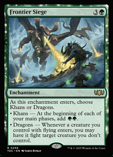 • Dragons — Whenever a creature you control with flying enters, you may have it fight target creature you don't control.