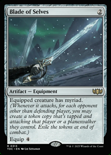 Whenever equipped creature attacks, you may have target creature block it this turn if able.
