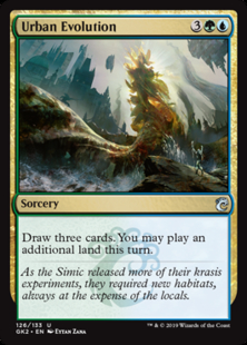 If you somehow manage to cast Urban Evolution when it's not your turn, you'll draw three cards when it resolves, but you won't be able to play a land that turn.