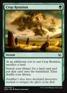 You can’t cast Crop Rotation without sacrificing a land, and you can’t sacrifice additional lands.