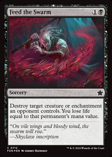 If the target permanent is an illegal target by the time Feed the Swarm tries to resolve, the spell doesn't resolve. You don't lose any life. If the target is legal but not destroyed (most likely because it has indestructible), you do lose life.