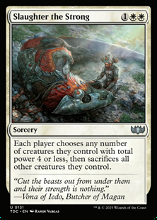 Each player chooses any number of creatures they control with total power 4 or less, then sacrifices all other creatures they control.