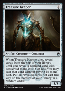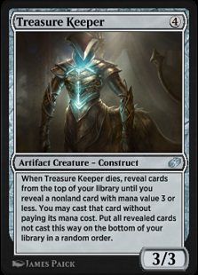 When this creature dies, reveal cards from the top of your library until you reveal a nonland card with mana value 3 or less. You may cast that card without paying its mana cost. Put all revealed cards not cast this way on the bottom of your library in a random order.