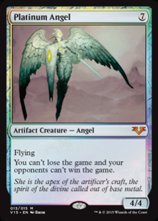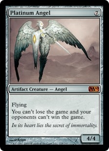 If you control Platinum Angel in a Two-Headed Giant game, your team can't lose the game and the opposing team can't win the game.